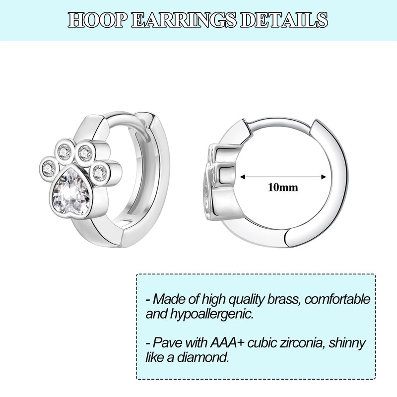 - ✨Unique Hoop Design✨ Small hoops earrings are design with paw print, makes the earrings more cute. Best gift for pet lover. Simple paw print earrings, let your pet close to your heart and comfort you. And the front of AAA+ cubic zirconia makes you more attractive.