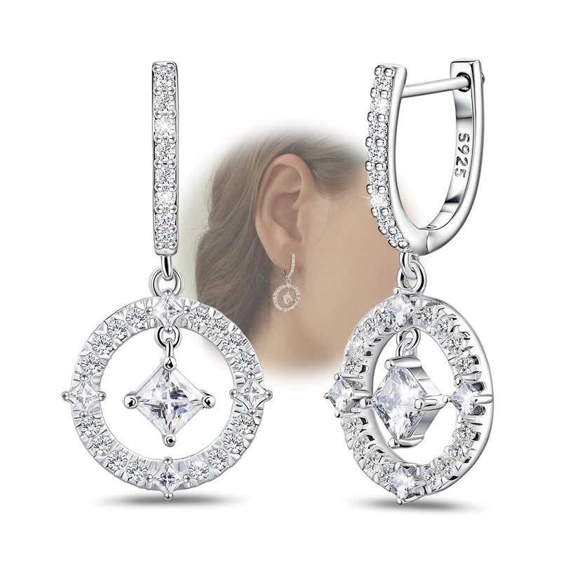 - ♥ Make a statement with these women hoop earrings featuring cubic zirconia accents. The cubic zirconia loop earring comes with a circle pendant with a square cubic zirconia hanging from the pendant. The unique design brings a modern touch to any outfit, making you even more unique and stylish!