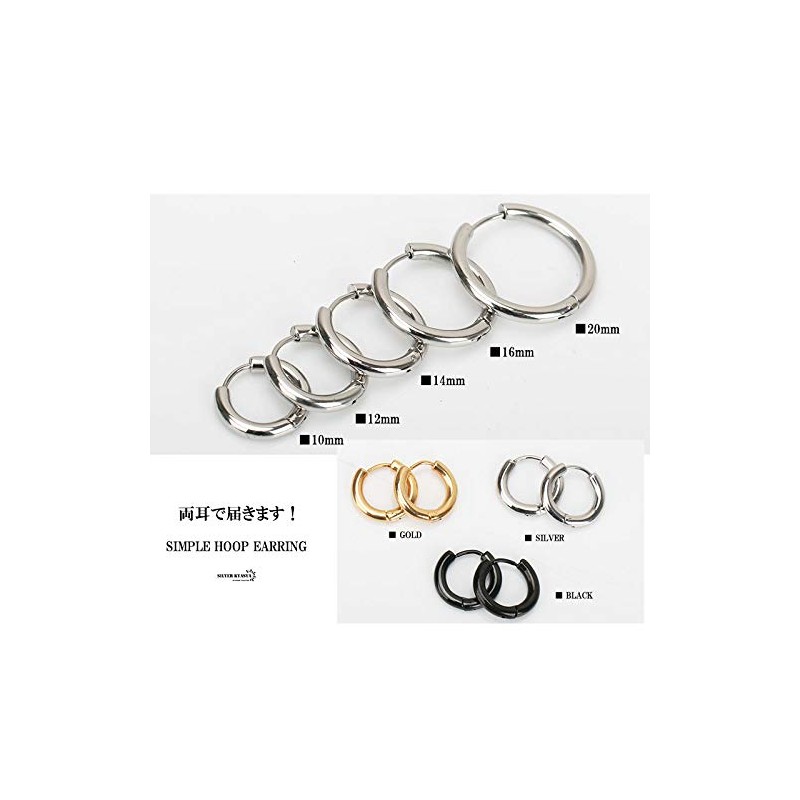 [Silver KYASYA] Thick Binaural 0.1 inch (3 mm) Wide Stainless Steel 316L Men's Hoop Earrings, Silver, Gold, Black, Ring Earrings, Gold, Black, 316L Earrings, Silver Stainless Steel