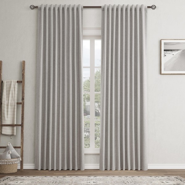 - LINEN BLEND FABRIC:These linen blackout curtains are crafted from 30% linen blend fabric and added with 100% blackout coating on the back. The Black out drapes are not only thick, but also texture and drapey. Slub weave fabric has visible linen flecks for a natural, textured and aesthetic look.