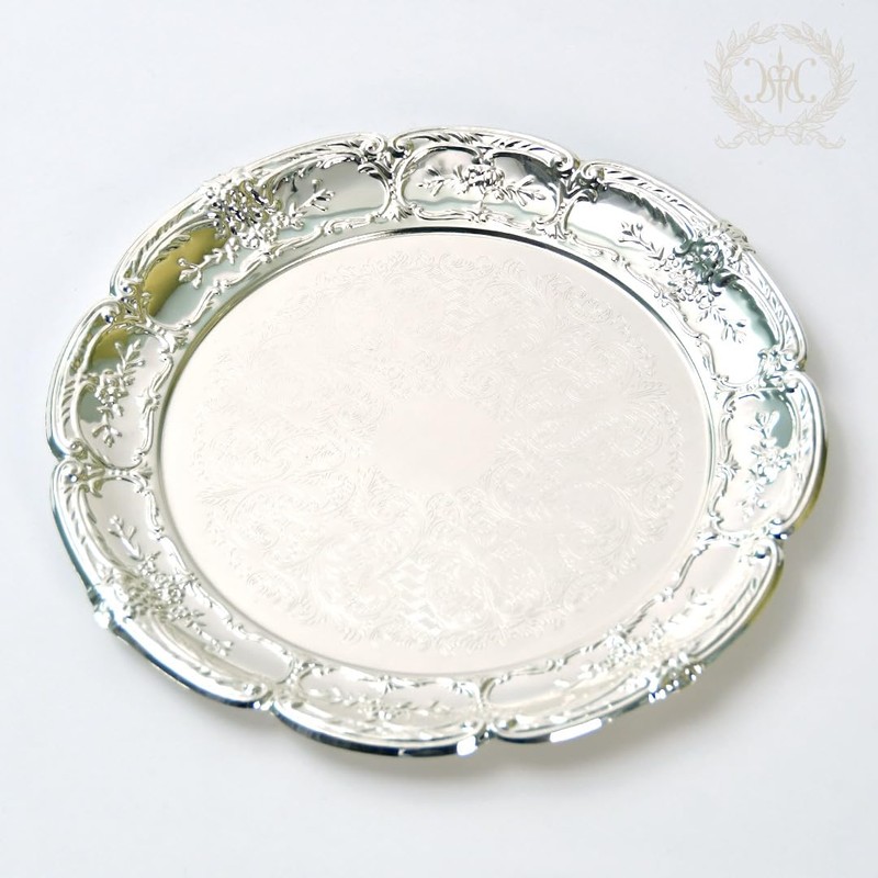 Silver Metal Arabesque Tray, Large, Round, Classic, Moroccan Interior, Stylish