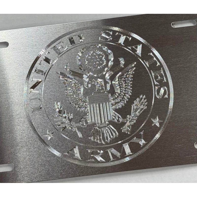 Silver on Silver Engraved US Army Military Car Tag Diamond Etched License Plate
