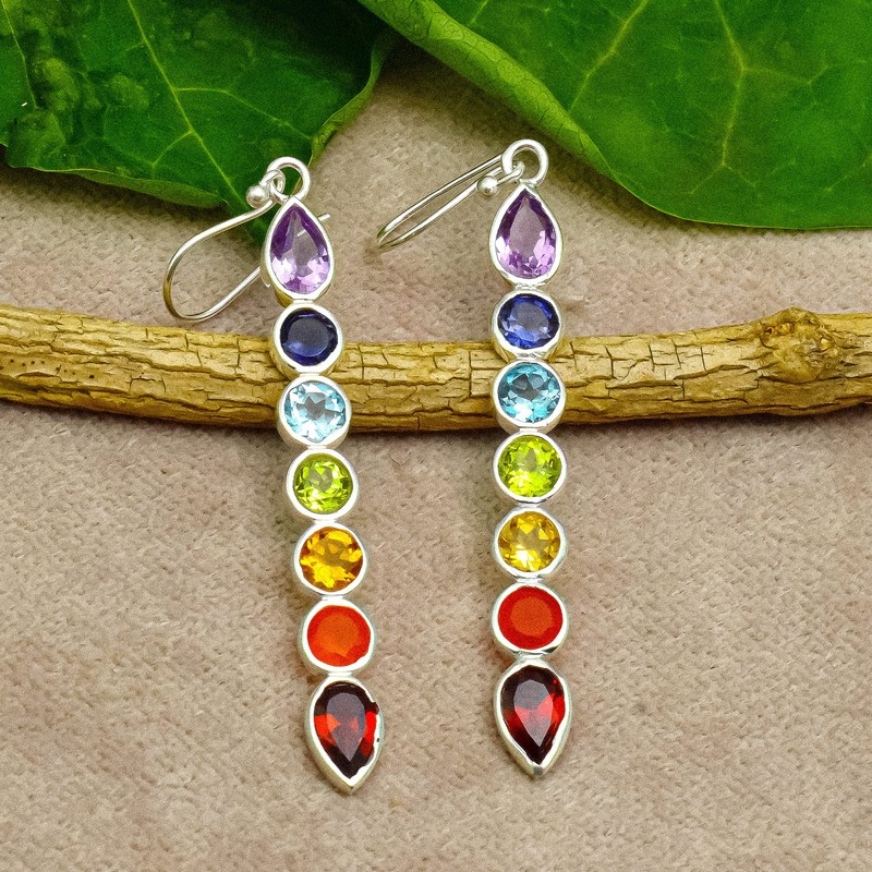 Silver Palace 925 Sterling Silver Natural Chakra Stone Drop Dangle Earrings for Women