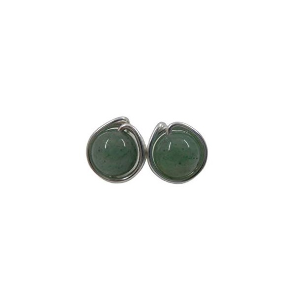 These filigree stud earrings are made from aventurine beads and silver plated wire.