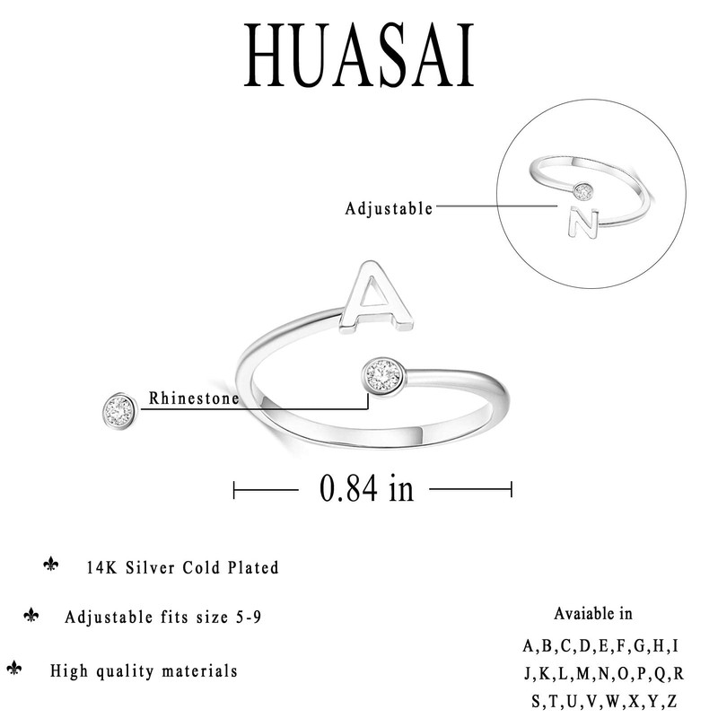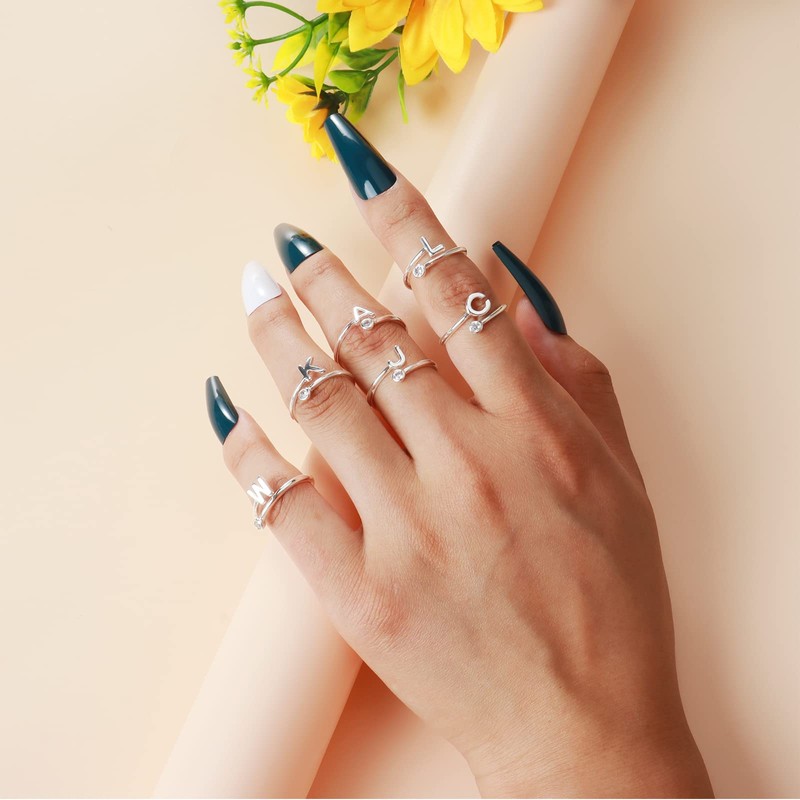 • INITIAL RING:The silver initial stackable ring can be adjusted according to your finger size, fits most people’s fingers.