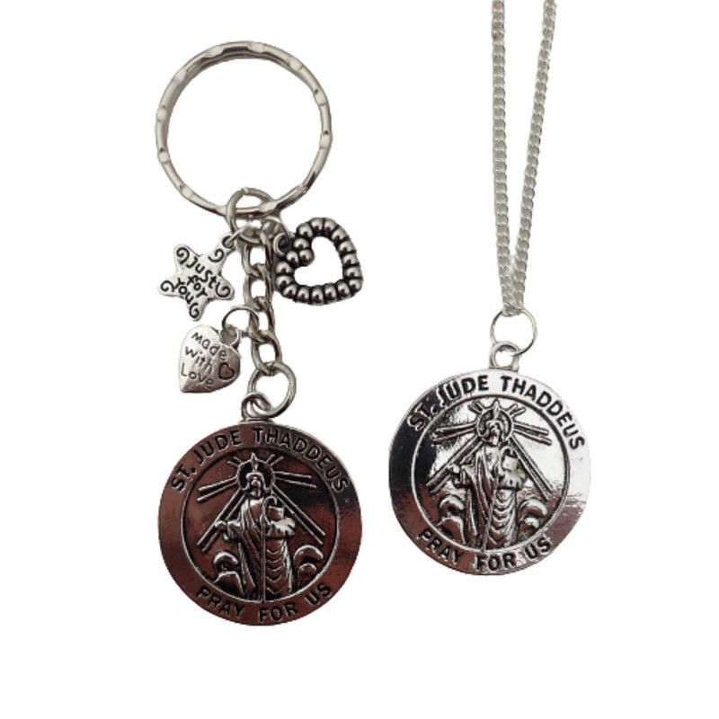 Silver Plated Necklace and Keyring set St Jude Thaddeus Patron Saint Pendant