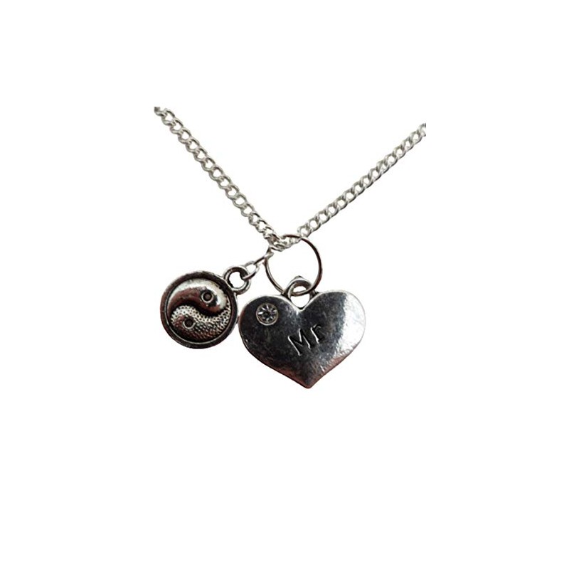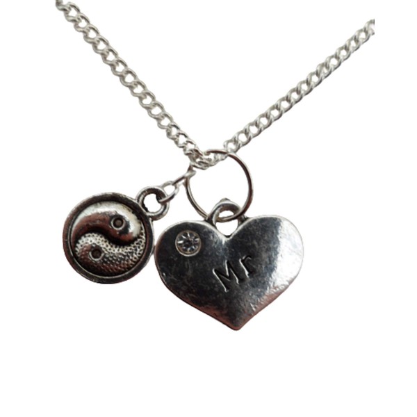 Silver Plated Necklace Mr Love Heart Gem Charm Yin Yang