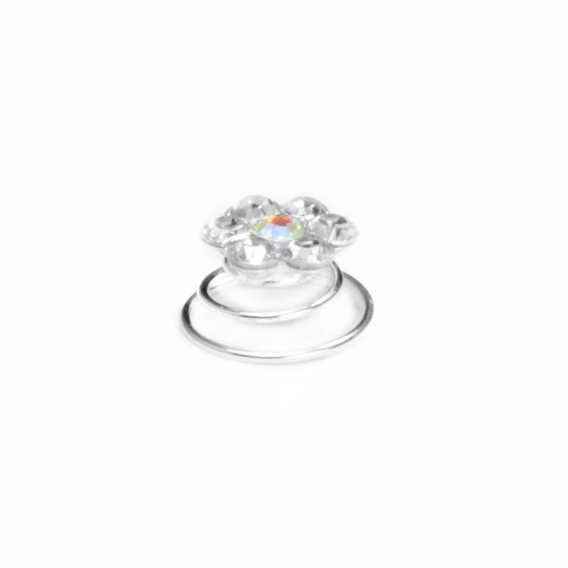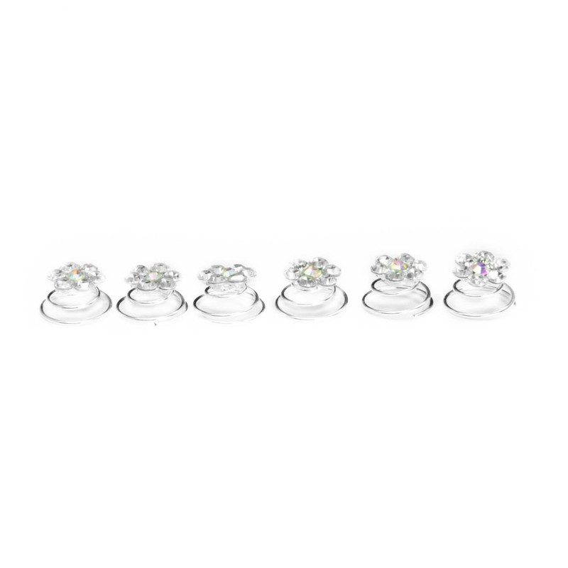 Silver Rhinestone Flower on Twist Colorful Center Stone Bridal Hair Pin Set of 6