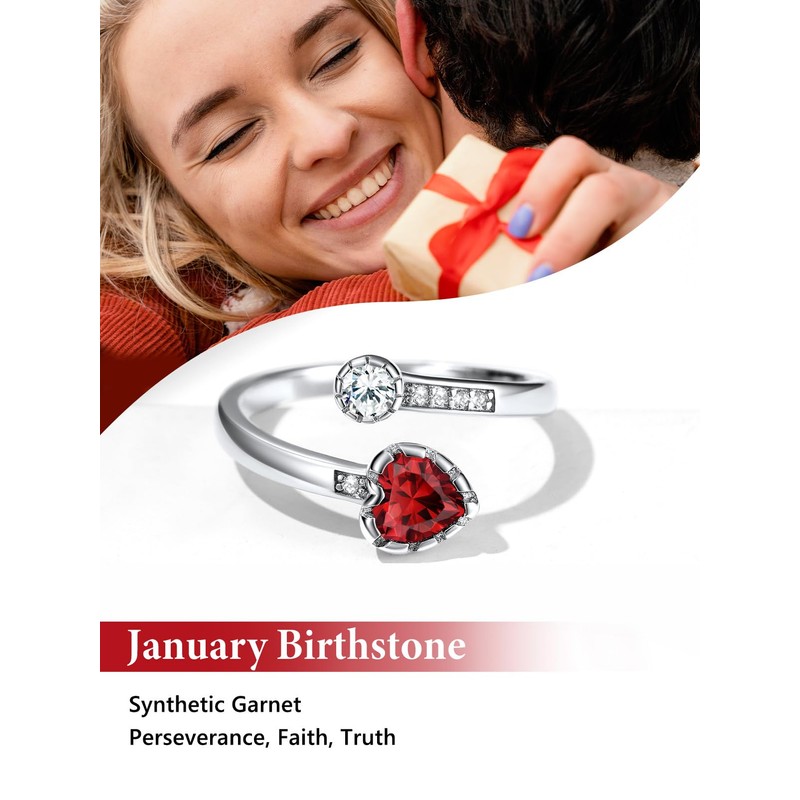Silver Rings for Women Birthstone Ring Heart Ring Sterling Silver Adjustable Ring Thumb Ring Garnet Ring Ladies Rings
