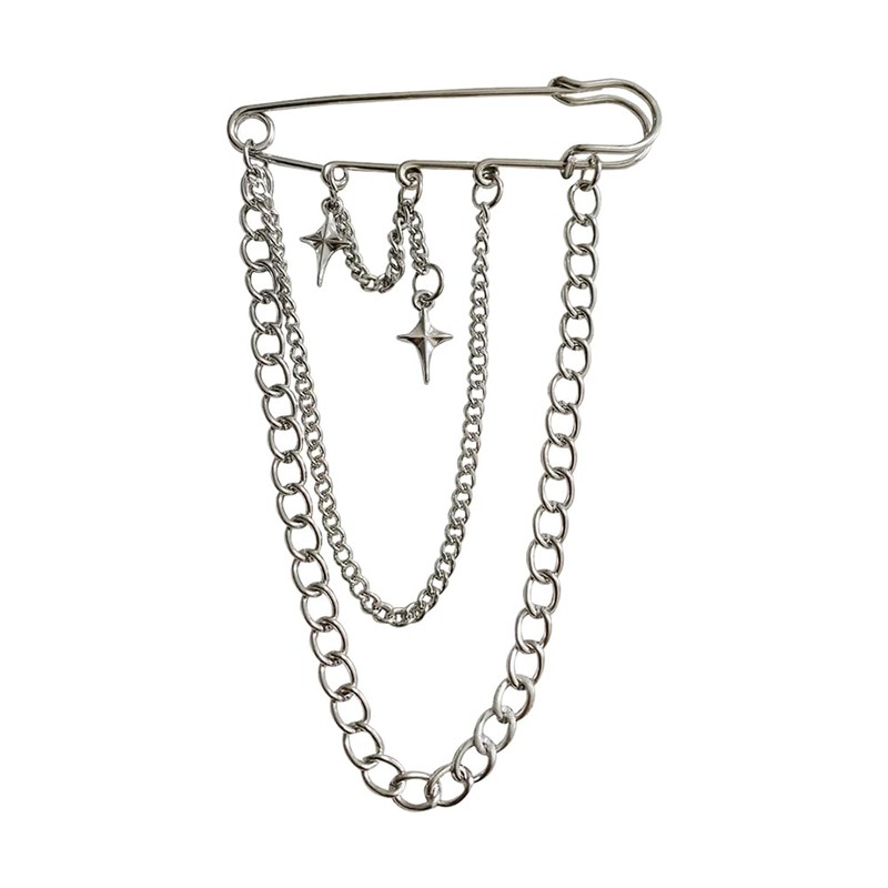 - 1. Silver Safety Pins Brooches for Clothes Fashion: Embrace your edgy side with this safety brooch pin featuring a punk-inspired design, The combination of star charms and multi layered chains adds a rebellious flair to any outfit, making it a must-have punk accessory for those who love punk fashion, great silver chain brooch for women men