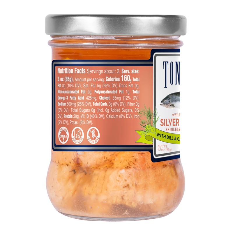 • Premium Quality: Wild-caught Tonnino Silver Salmon Fillets in extra virgin olive oil, perfect for gourmet dishes.