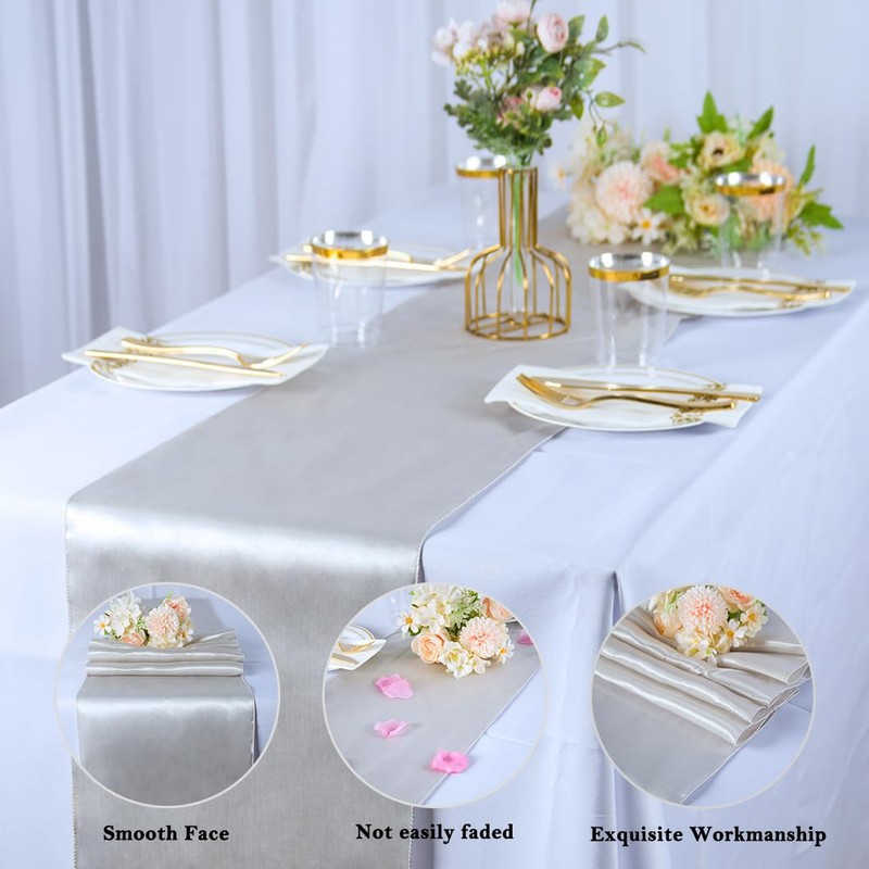 - ✿ QUANTITY & COLOR TABLE RUNNERS: You can get 10 pieces of solid color satin table runners. Silver color smooth table runner. It's more luxurious, classic and gracious, ideal for weddings and parties.