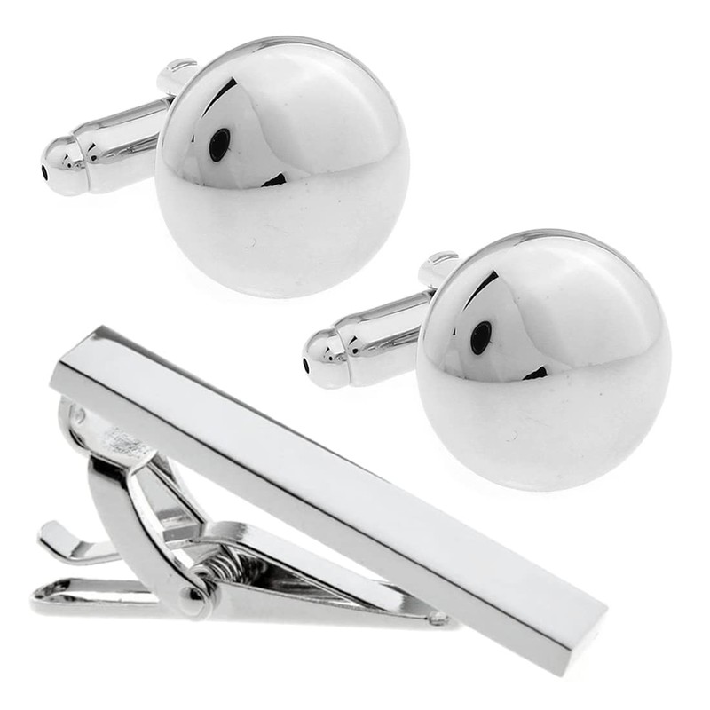 Silver Simple Round Cuff & Tie Clip Set Cufflinks Tie Bar n02780, Brass, No Gemstone