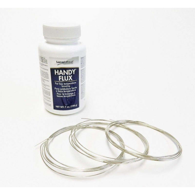 🟢SALE is for Handy Flux a 7oz. bottle with Brush and 3 GRADES of SILVER Solder Wire, (Soft, Medium, and Hard) 5 Feet long of each grade each, weighting approximately 1/4Toz). - 4.85 Dwt (Total sale for 15 feet - 3/4Toz. )