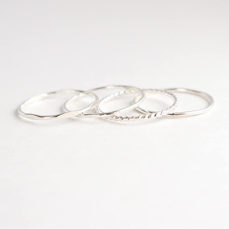 silver stacking rings. SET of FOUR. sterling silver stack rings. minimalist rings. stackable silver rings. twist, hammered, stardust, smooth.