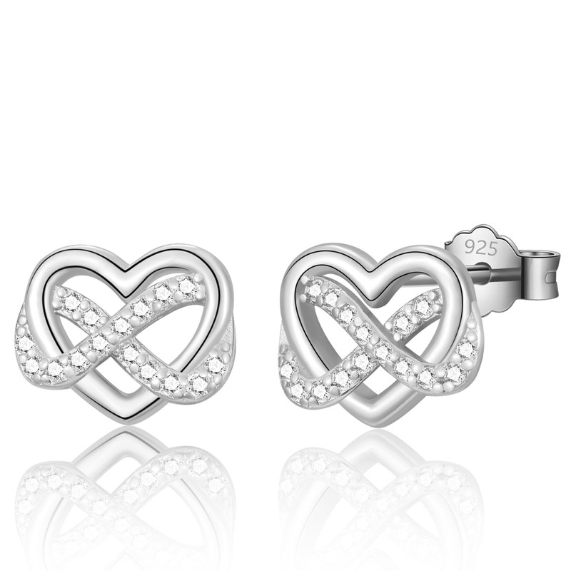 - 【Infinity Heart Stud Earrings】Our silver studs earrings are designed in the shape of a heart with cubic zirconia infinity symbol, sweet and romantic, super sparkling and beautiful. Great choice for daily wear.
