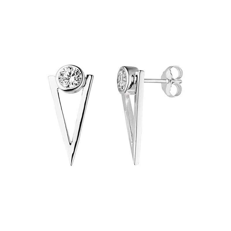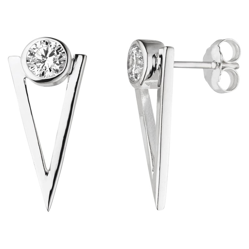 Silver Stud Earrings "Triangle" Zirconia Goldsmith's Work from Germany (Sterling Silver 925), Silver Sterling Silver, Cubic Zirconia