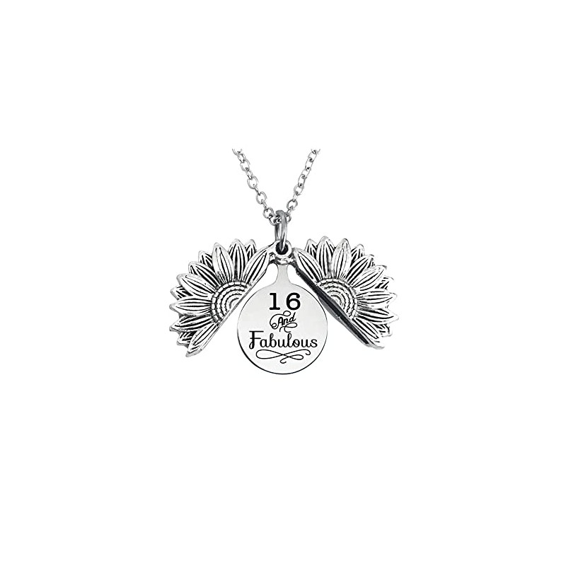 Silver Sunflower Locket Pendant Necklace for Girls 16 Year Old Birthday Gifts for Her 16th Birthday Gifts for Girl 16 and Fabulous Necklace for Daughter BFF 16 Birthday Gifts