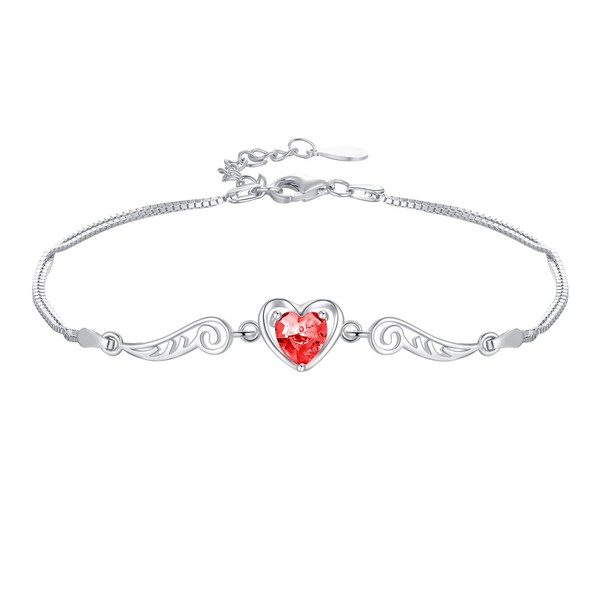 Silver Thunder Anklet, Women's Natural Garnet, 925 Silver, No Metal Allergy, 2 Chain Heart, Angel Wings, Popular Ankle Accessory, Gift, Birthday, Anniversary, Women's Present, Silver