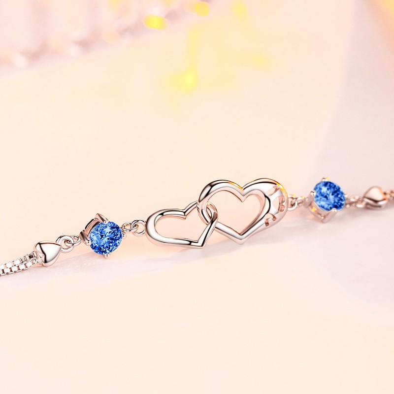 - (Double Heart Motif) A stylish bracelet that combines a moderately sweetness and elegance, with the sparkle of a sharp diamond and the sweet open heart. The birthstone with a beautiful shine is set to relieve sweetness