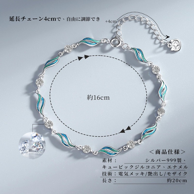 - Product Specifications & Safe Material: Length 6.3 inches (16 cm) + Adjuster 1.6 inches (4 cm) (You can adjust the size of your choice); Material: Made of 999 silver, cubic zirconia, enamel; Technology: Electroplating/polishing/mosaic; Chain: Approx. 7.9 inches (20 cm); Silver content is 99.9% or more and is gentle on the skin. Safe for those with metal allergies