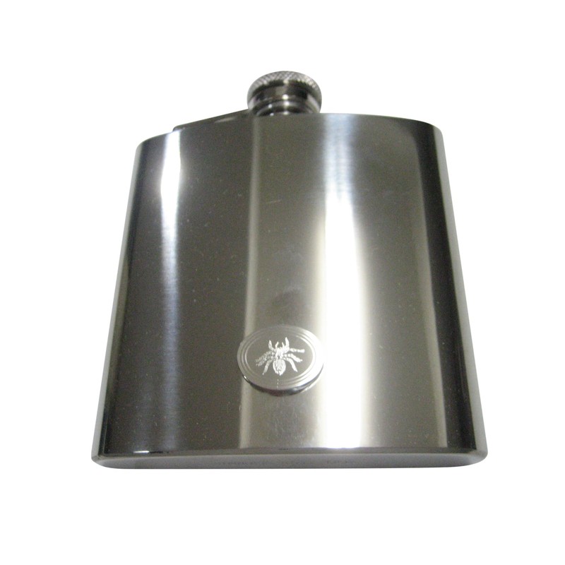 Silver Toned Oval Etched Tarantula Spider Bug Insect 6 Oz. Stainless Steel Flask