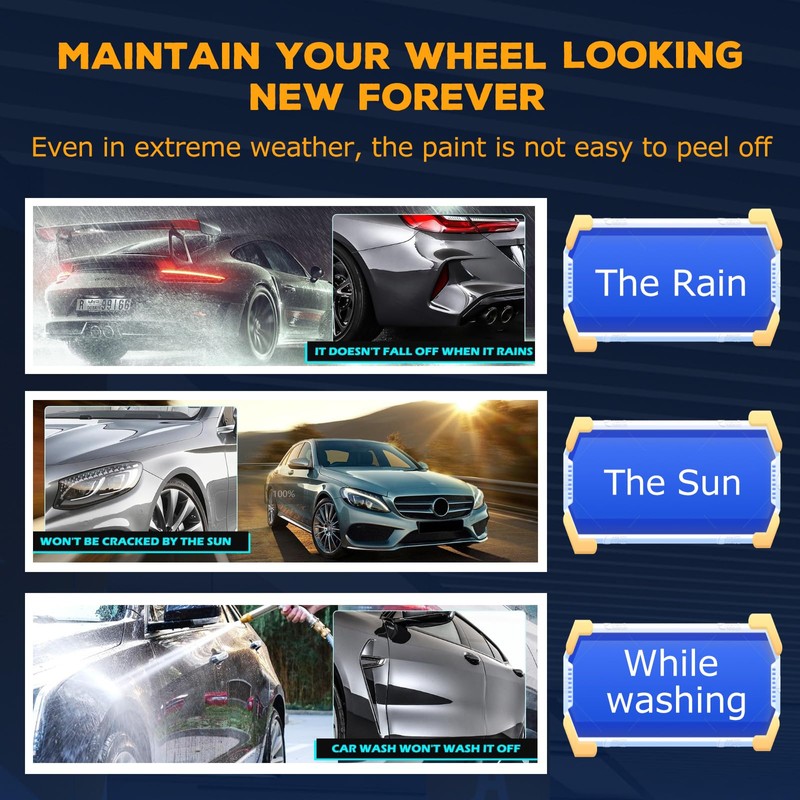 This car paint scratch repair dries quickly and effectively covers scratches, getting rid of the Ugly curb rash