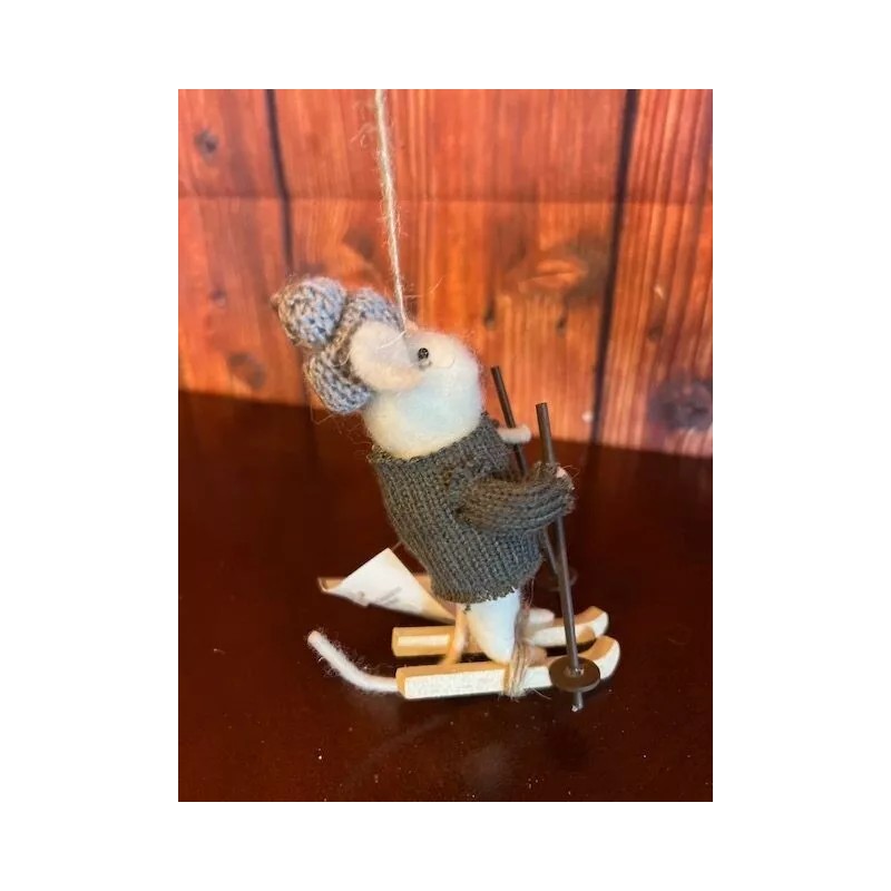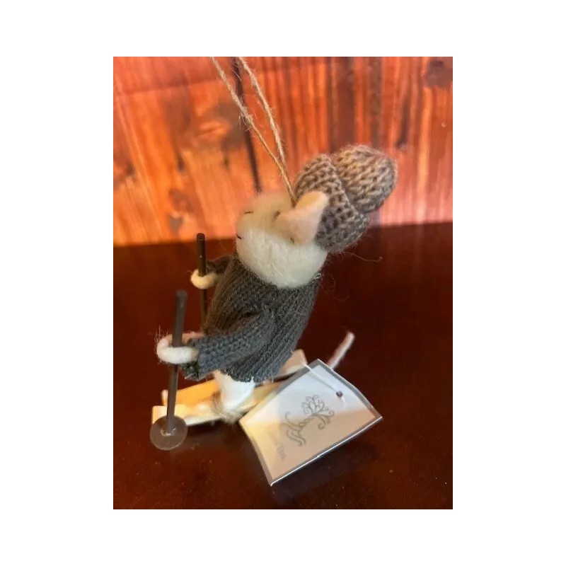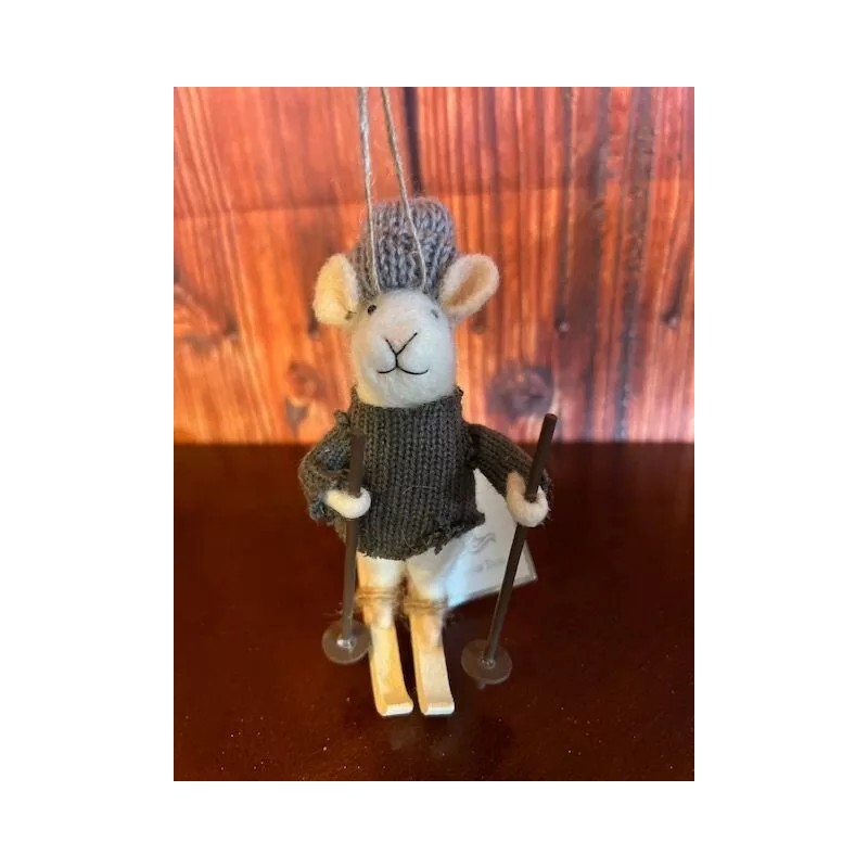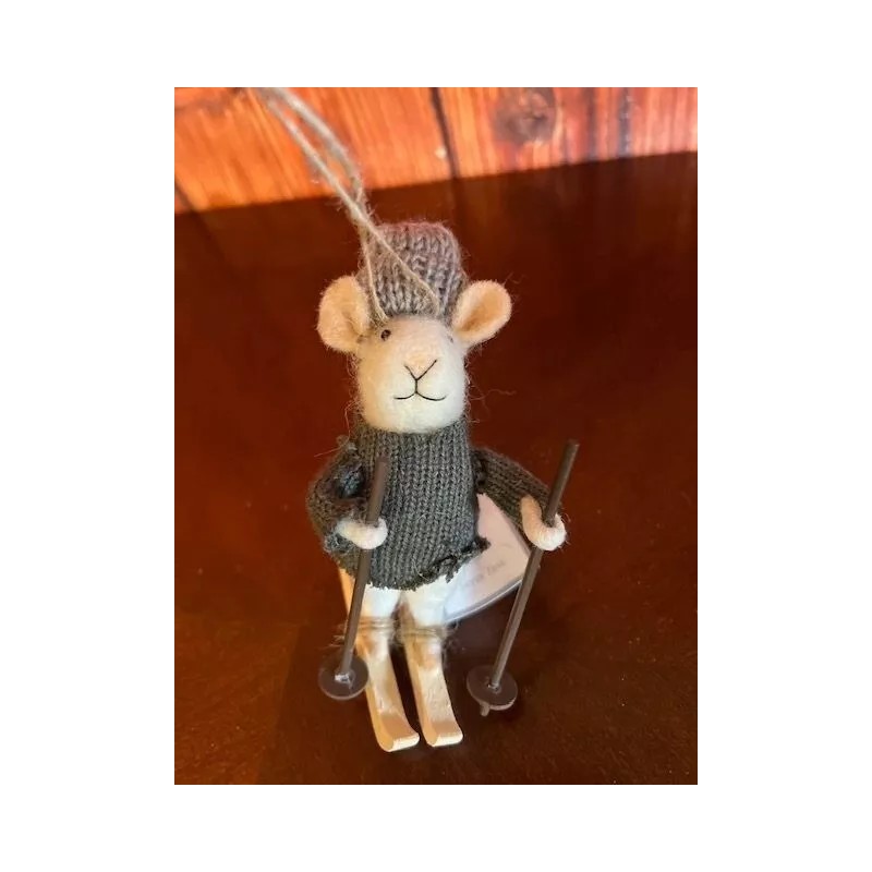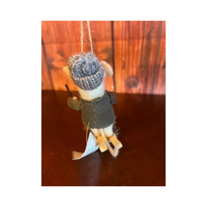 Silver Tree Felted Mouse Christmas Ornament On Skis With Knit Sweater & Hat By Silver Tree