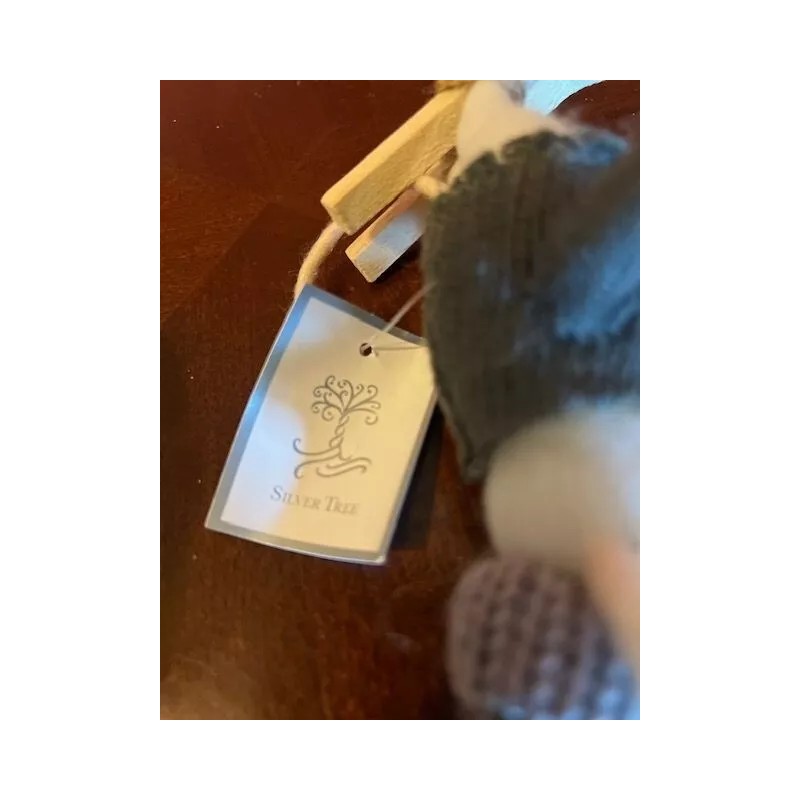 Silver Tree Felted Mouse Christmas Ornament On Skis With Knit Sweater & Hat B...