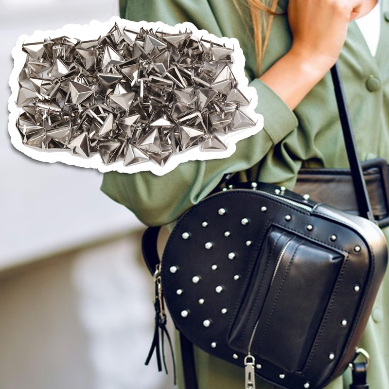200pcs silver triangle rivets, enough quantity for your DIY crafts such as clothes, shoes, bags and other accessories.