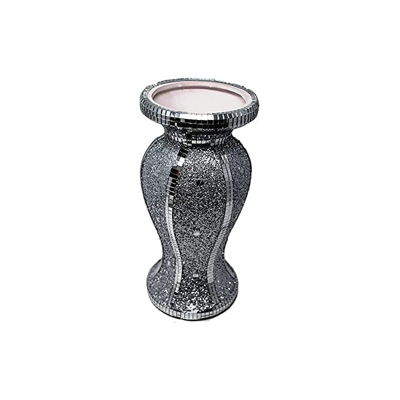 Silver Vase Statue Sparkle Ornament Bling Crushed Diamond Gift | Crushed mirrored Silver Vase pot design-40 CMS(15" inch) |Crushed Diamond Display |Gift Present Home Decoration