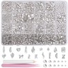 Silver White Nail Art Rhinestones Kit Multi Shapes Crystal Flatback Nail Gems with Half Round Nails Rhinestones for Bedazzling Gems Crystals Rhinestone for Nails Art Craft