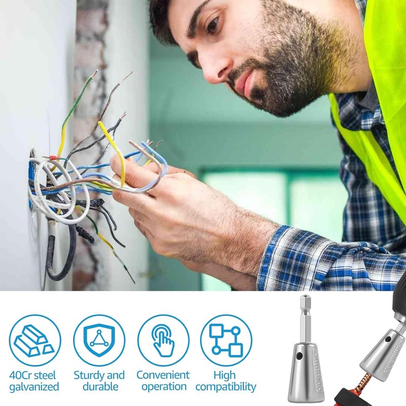 Silver Wire Twisting Tool, 1/4" Hex Shank Cable Stripper and Twister Tool, Multifunctional 2-6 Way Wire Stripping Connector, Drill Driver Cable Twisting Connector Tool for Cable Wire Strippers