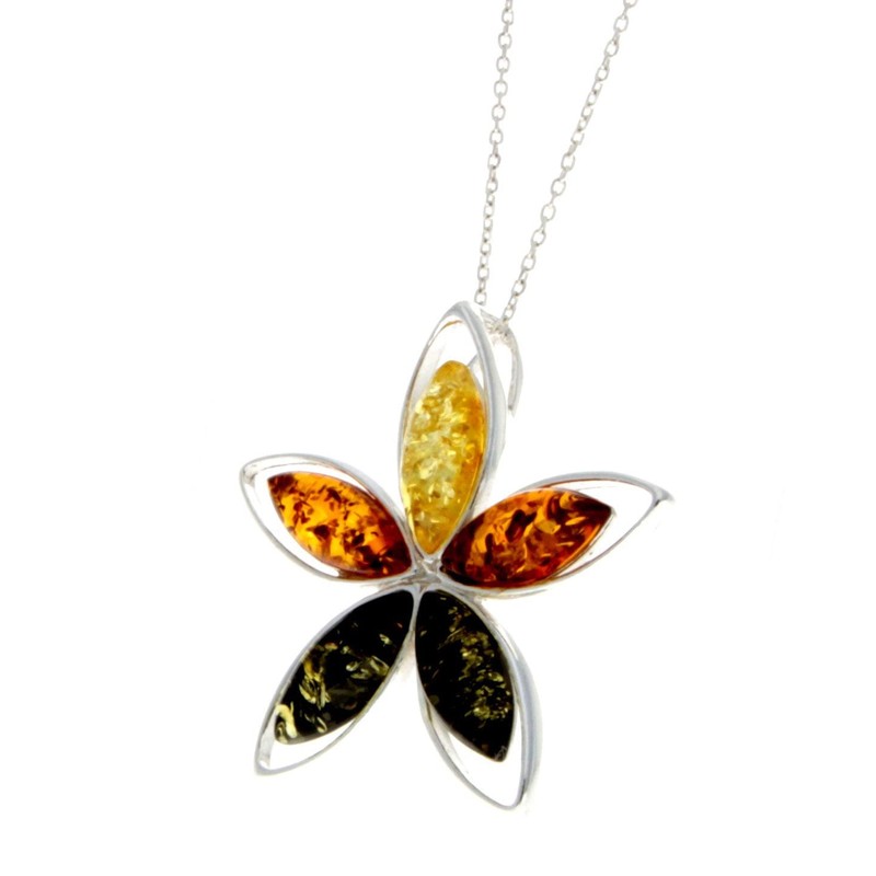 SilverAmber Jewellery - 925 Sterling Silver & Genuine Mix Baltic Amber Star Modern Pendant - M373