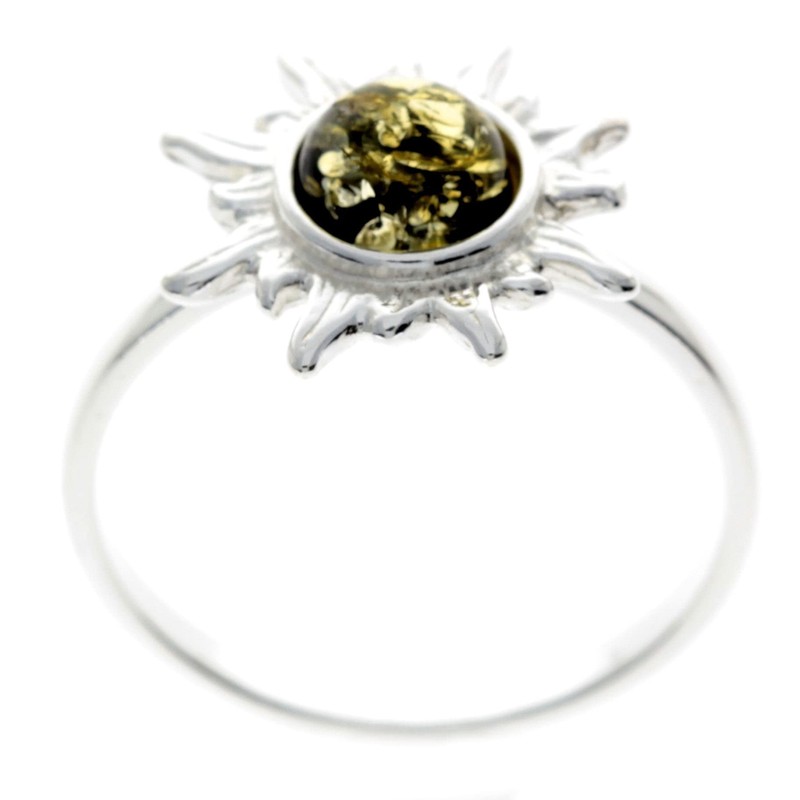 SilverAmber Jewellery Silver Amber Jewellery - 925 Sterling Silver and Green Baltic Amber Sunstar Ring - UK Ring Size Q - M730GQ, Gemstone