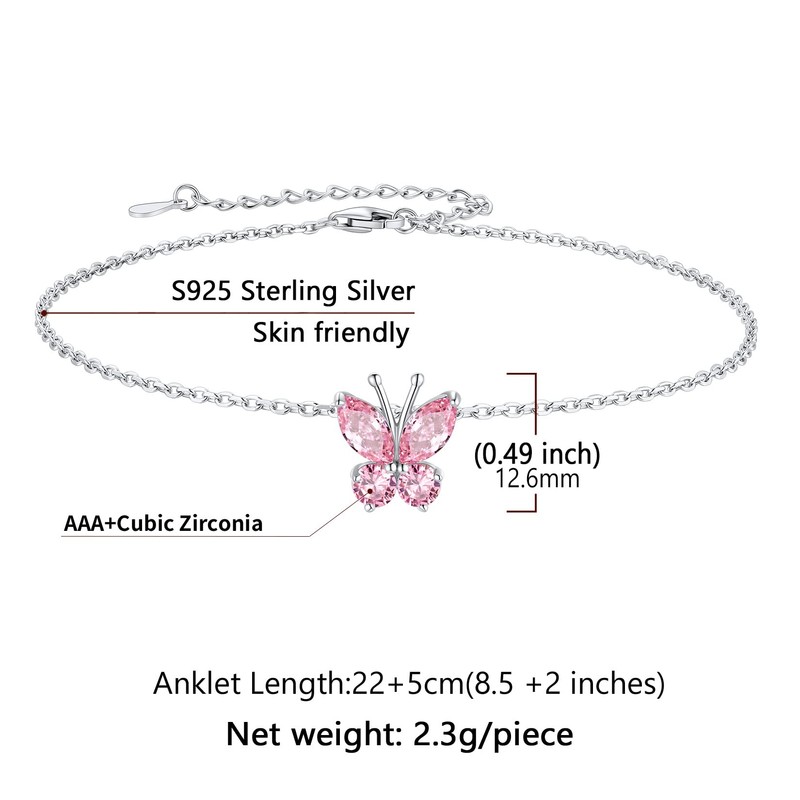 SILVERCUTE Ankle Bracelets for Women Girls Sterling Silver October Birthstone Anklet Butterfly Charm Anklets
