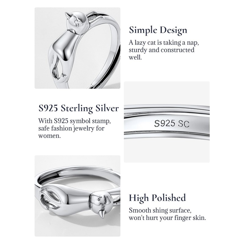 • ✨【Material】The cat ring is 925 sterling silver made, hypollergenic, lead free and nickel free; polished & smooth shing surface, won't hurt your skin.
