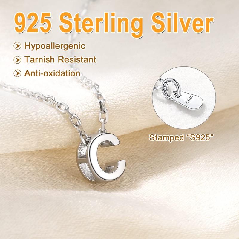 SILVERCUTE Name Letter Pendant C Necklaces for Teenage Girls Women Sterling Silver Initial Choker Necklace Jewellery