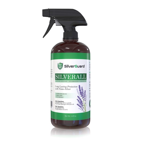SilverAll natural cleaner is made only of highly effective nano-silver (extremely small-particle silver), hydrogen peroxide food grade, lavender essential oil and highly purified water.✦ Pure, all-natural formula 🌱 If we don't list it, it doesn't exist in our bottle✦ Nano-silver particles remain active on the surface for hours providing a long-lasting barrier of protection✦ Healthy and effective alternative to harsh chemical products