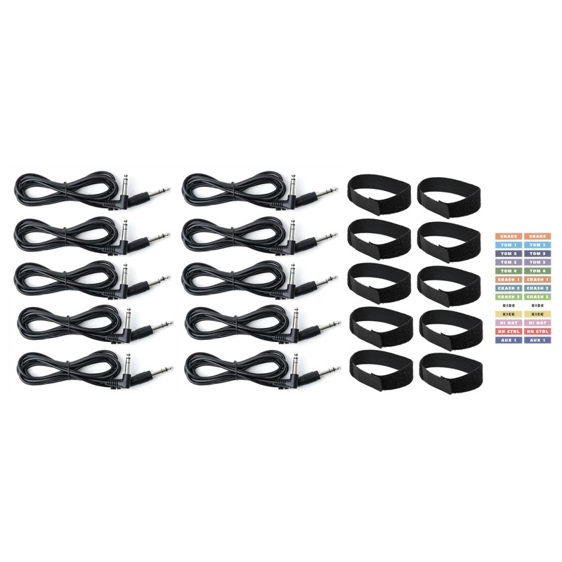 The Silverline Audio 10 Cable Connection Kit for eDRUMin 10 MIDI Drum Trigger Interface includes everything you need to connect your eDRUMin 8 Percussion Drum Pad aux connections to external cymbals, pedals and pads.