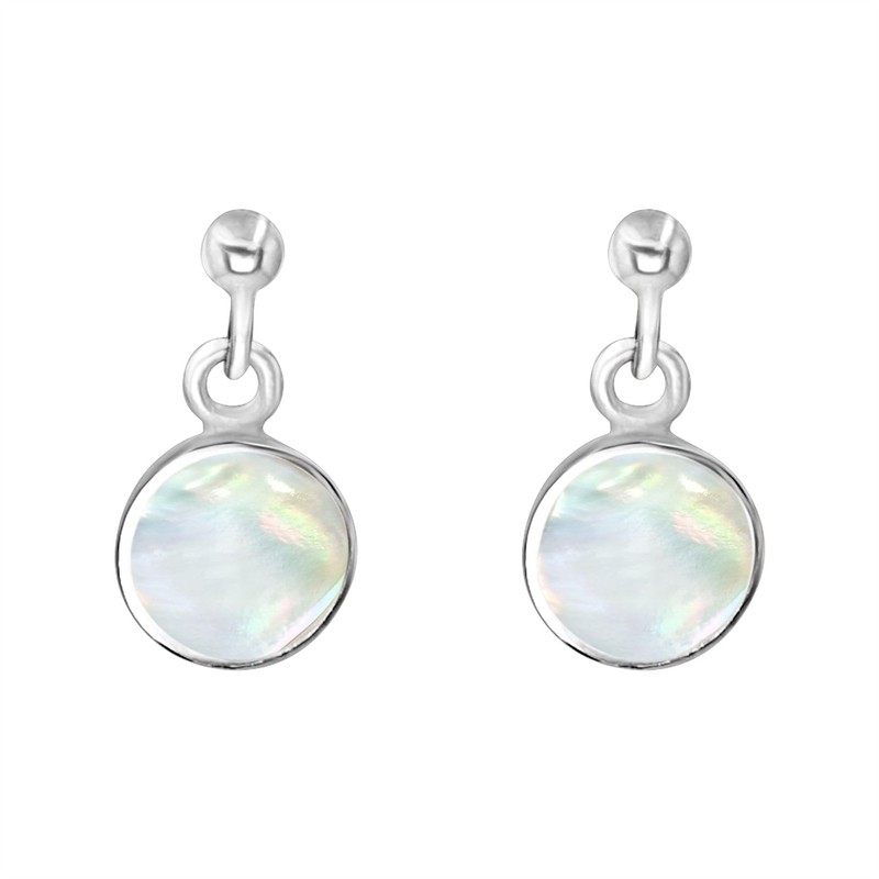 - FINE JEWELLERY TO CHERISH - 925 sterling silver round drop earrings featuring inlaid mother of pearl and a butterfly back closure. Circle width 8 mm (0.3"). Weight 1.65 grams. These 925 silver dangly earrings for women are for pierced ears.