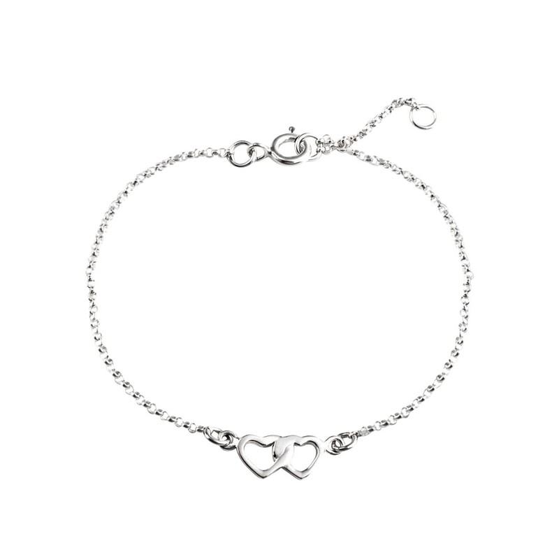 - FINE JEWELLERY TO CHERISH - 925 sterling silver bracelet. Includes a 925 sterling silver Double heart charm design. Charm Width 6 mm. Bracelet length 16 + 2 cm extender. Fits a wrist size of up to 18 cm. This solid 925 silver bracelet would make a stunning luxury friendship bracelet.