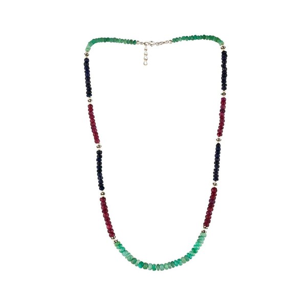 - CHERISH FINE JEWELRY - 925 Sterling Silver Pearl Necklace with Emerald, Ruby and Sapphire Beads. Width: 4 mm, length: 46 cm + 1.5 cm extension. Weight: 16.17 g. Add some colour to your look with our bead gemstone jewellery made of solid 925 silver. Our boho pearl necklaces look great on their own or with another pearl necklace.