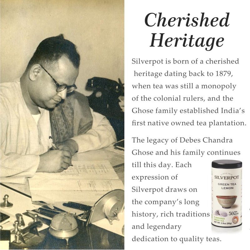 Silverpot Green Tea & Lemon, 50 Round Tea Bags, Tin | Gourmet Green Tea | Caffeinated | Enjoy Hot or Iced