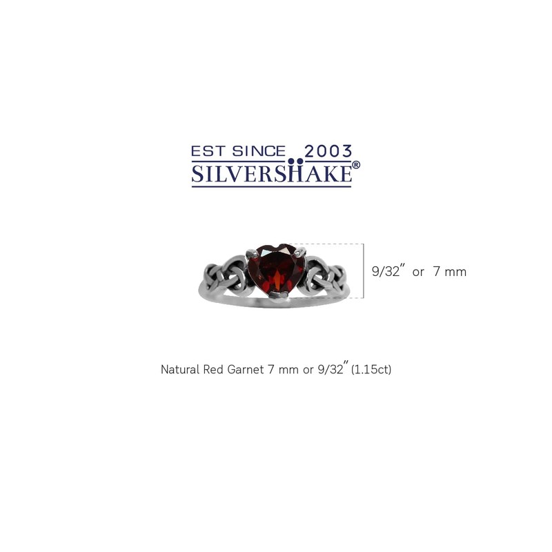 - Silvershake 1.15ct. Natural Heart Shape Garnet 925 Sterling Silver Celtic Knot Ring; is shipped to you in anti-tarnish protection inside reinforced gift boxes with satin-style pouches; guaranteed beyond competitors