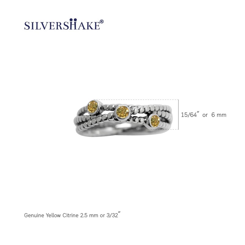 - Silvershake 3 Stone Natural Citrine 925 Sterling Silver Stack Stackable Ribbon Ring; is shipped to you in anti-tarnish protection inside reinforced gift boxes with satin-style pouches; guaranteed beyond competitors