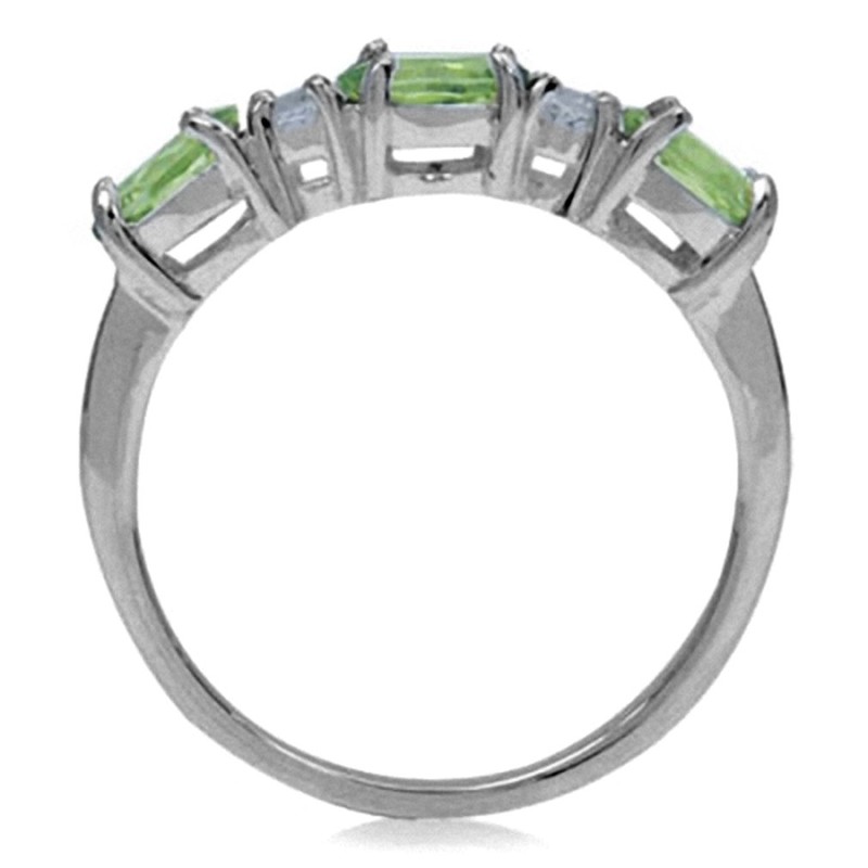 Silvershake 3 Stone White Gold Plated 925 Sterling Silver Ring, 925 String Silver, natural green peridot & white topaz