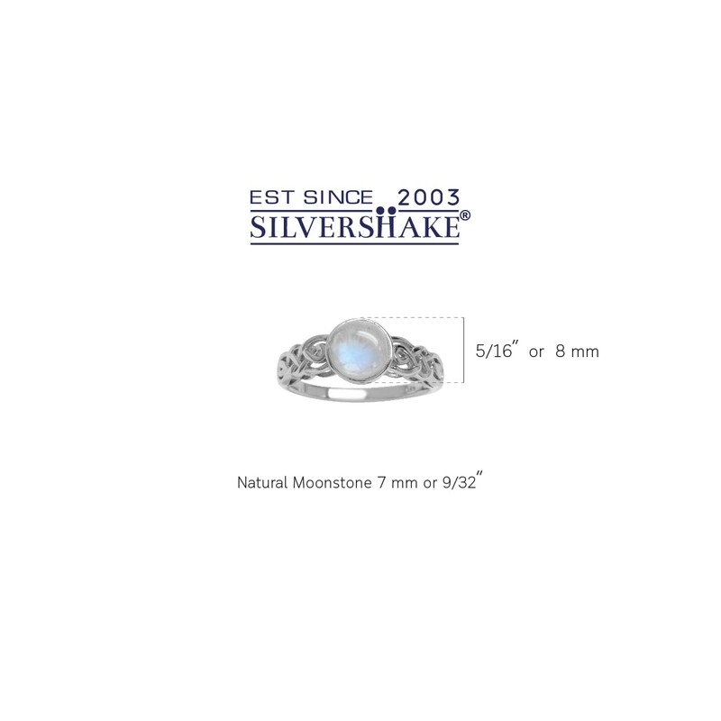 - Silvershake 7mm Natural Round Shape Moonstone White Gold Plated 925 Sterling Silver Celtic Knot Solitaire Ring, is shipped with anti-tarnish protection in reinforced gift boxes & satin-style pouches; guarantee far-outlasting competitors