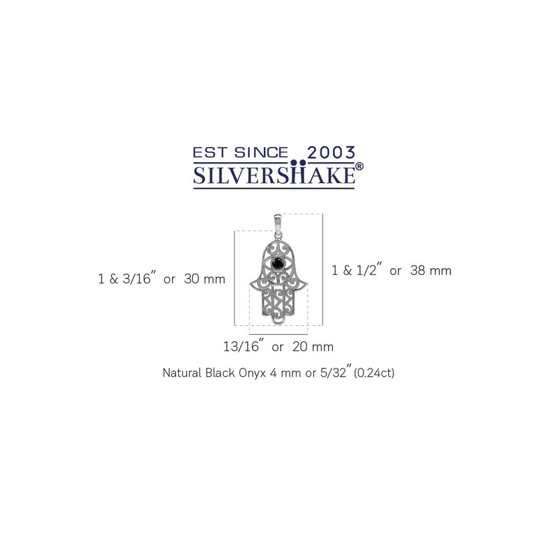 - Natural Black Onyx 925 Sterling Silver Evil Eye On Hamsa Hand Gemstone Pendant