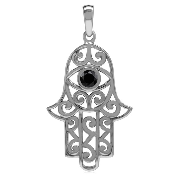 Silvershake Colgante De Mano De Fátima Con Ojo Malvado De Plata De Ley 925 De Ónix Negro Natural